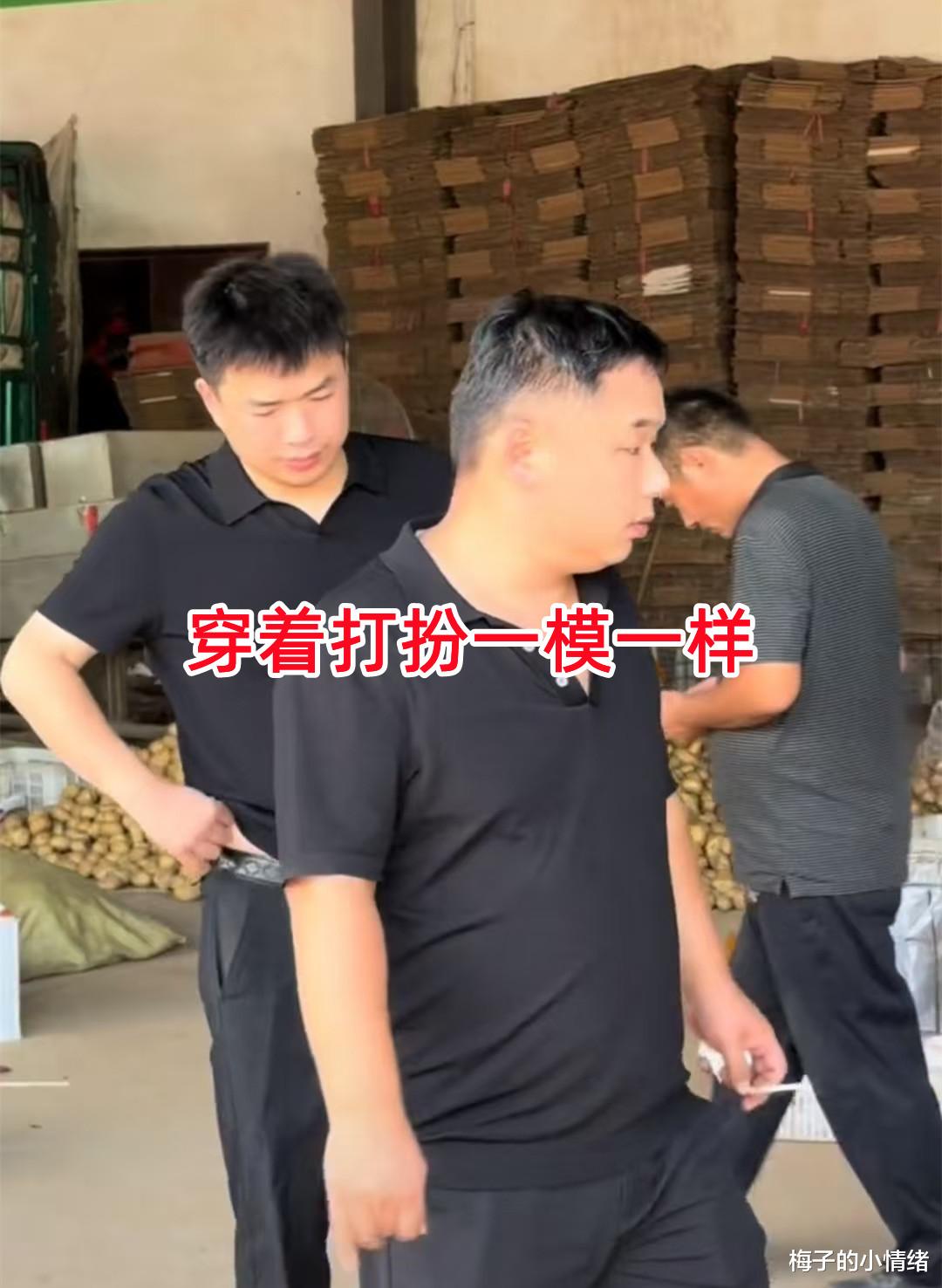 可穿着打扮并不是让女孩觉得惊讶的重点,主要还是男友和爸爸的长相,只见两个人都是那种偏魁梧的身材,看起来相当壮实,五官也是非常相似,就连动作举止给人的感觉也是神同步。