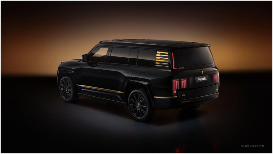 仰望U8L拥有曜石黑配日曜金 、曜石黑配日珥金2款专属配色,以及曜石黑、萤石白、龙石绿3款常规配色。其中2款专属黑金配色灵感源于战国时期的黑漆描金工艺,车漆历经500余天调配,加入纳米级陶瓷清漆,提高了耐刮擦性能,以及光泽度。曜石黑配日曜金低饱和度色调营造典雅氛围,曜石黑配日珥金层次丰富低调华贵,演绎“甲光向日金鳞开 ”的东方意境。