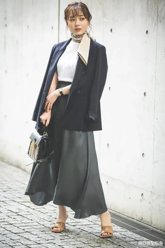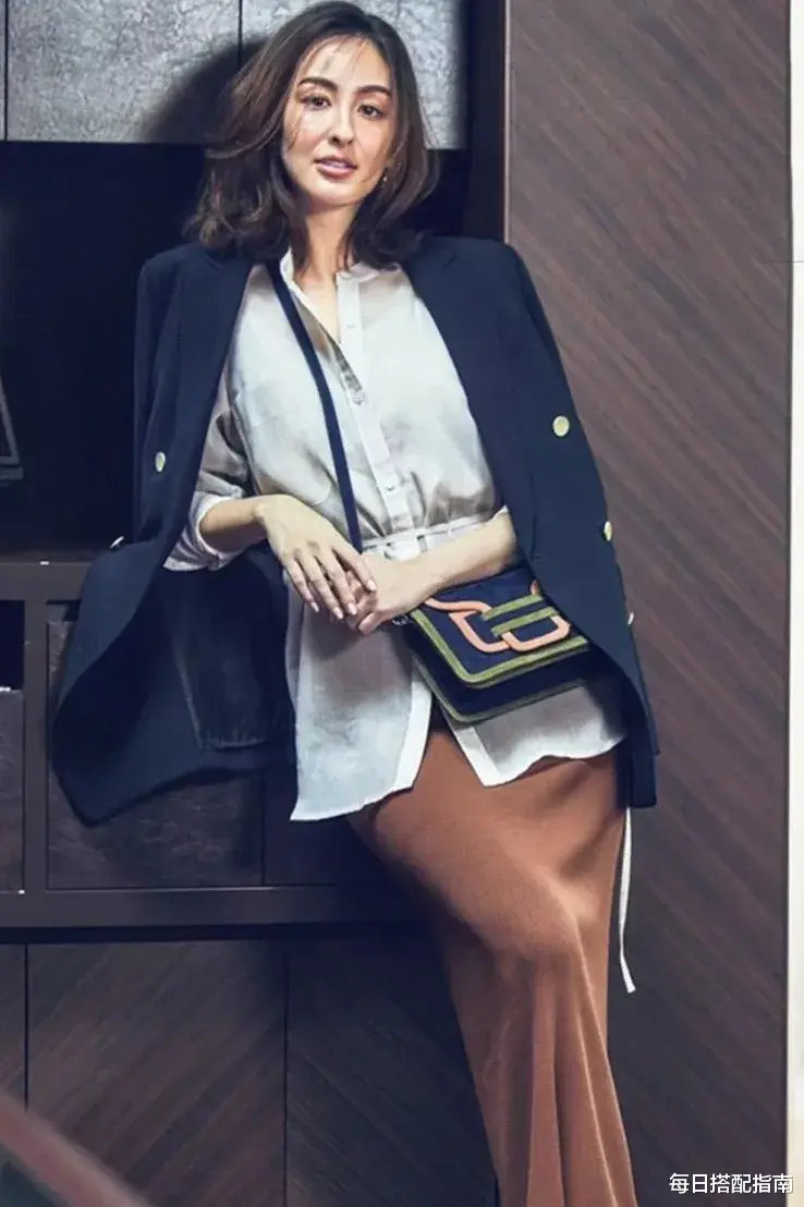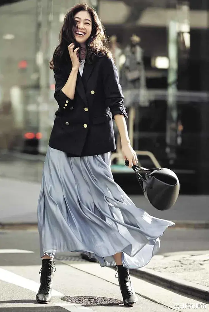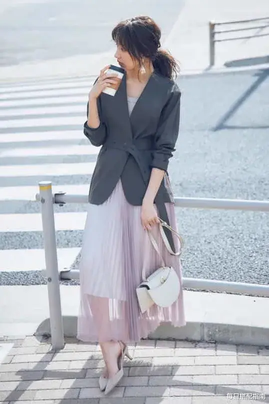 📌 总结来看,“西装+裙子”能穿出气质感,依靠的就是三点:线条的对比、材质的反差、风格的融合。这三大逻辑,让这套搭配既不会显刻板,也不会显轻浮,而是恰到好处地展现女性的多面气质。