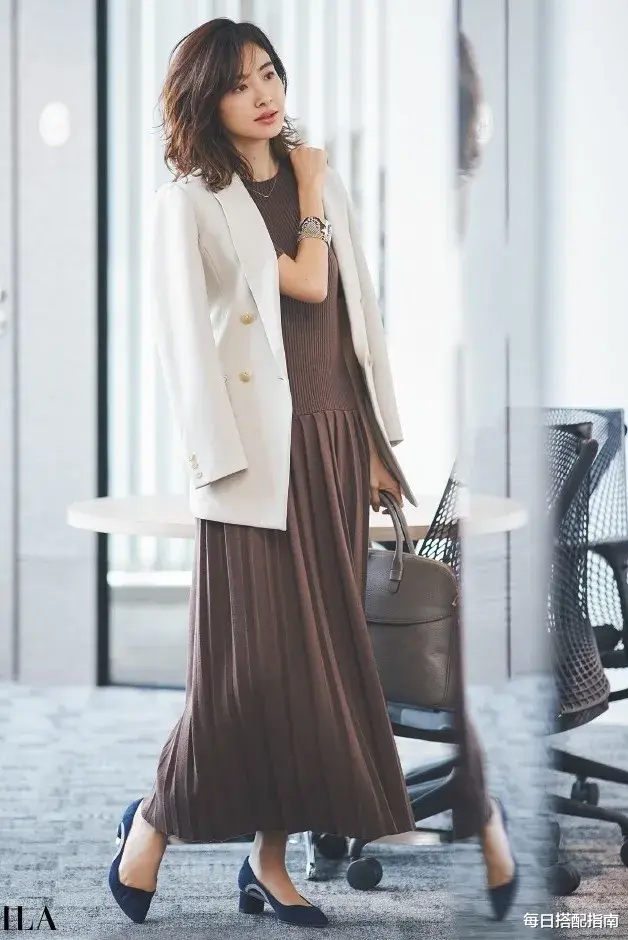 两者结合,正好满足了秋天对“温柔+气场”的双重需求,既能应对通勤场合,又能轻松切换到日常与约会。