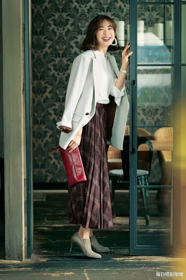 一到入秋,穿搭就成了很多人纠结的难题:早晚温差大,外套必不可少,但又想保持轻盈感,不至于显得厚重。这个时候,“西装+裙子”的组合,简直就是秋天的优雅解法。🌿