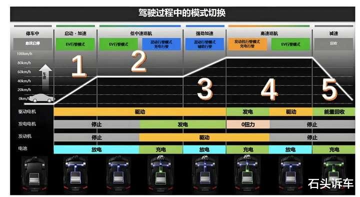 混动车省油的逻辑就是让发动机永远保持要最佳工作状态,内燃机的缺点是热效率不高,超过40%就算高了,在低速行驶时,发动机热效率甚至连10%都没有,油气燃烧不充分,这也是燃油车在城市中低速行驶油耗高的原因。