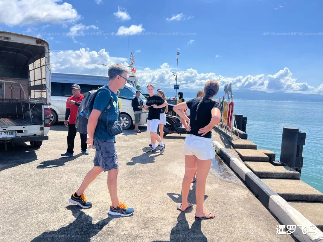 图:游客登上前往达叻府象岛的渡轮。