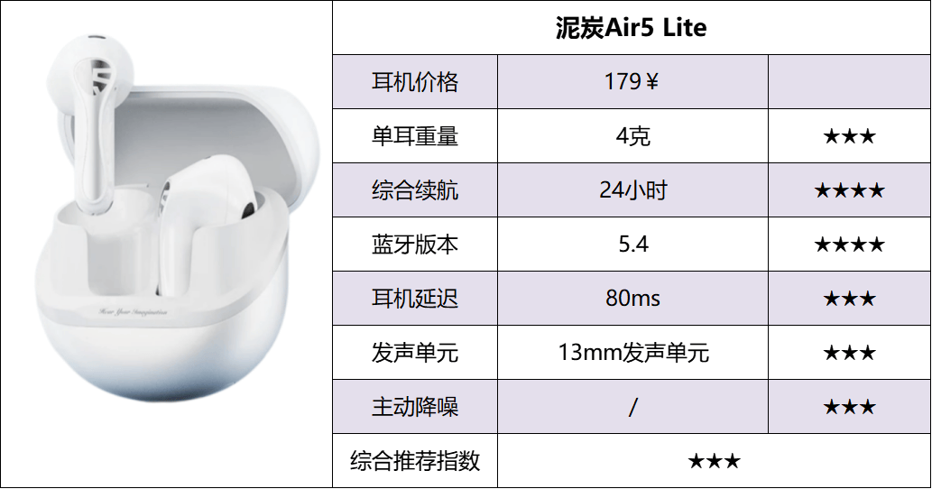 泥炭 Air5 Lite 的充电仓采用椭圆型设计,整体线条圆润流畅。45° 黄金角度斜切开仓设计,不仅让开仓动作更具流畅性,上手质感也十分舒适。官方标称重量仅为 4 克,长时间佩戴中能带来零压无感的佩戴体验,不会有明显的压迫感。