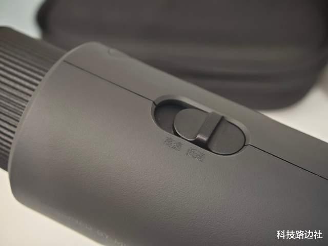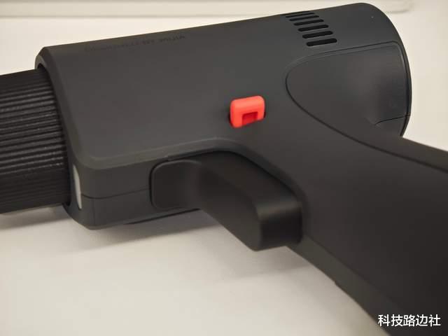 手柄处是启动开关,采用的无极调速设计,转速随着按压扳机力度平顺上升,这个力度控制相当顺畅。橘红色键位是换向键,推到中间则是锁止键,日常不用时,建议推到锁止键位置。