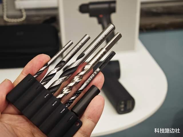 配备的五枚钻头分别是4mm木工钻头、6mm木工钻头、8mm木工钻头、8mm霸王钻头、6mm陶瓷钻头,以及60mm×10mm磁吸式延长杆。