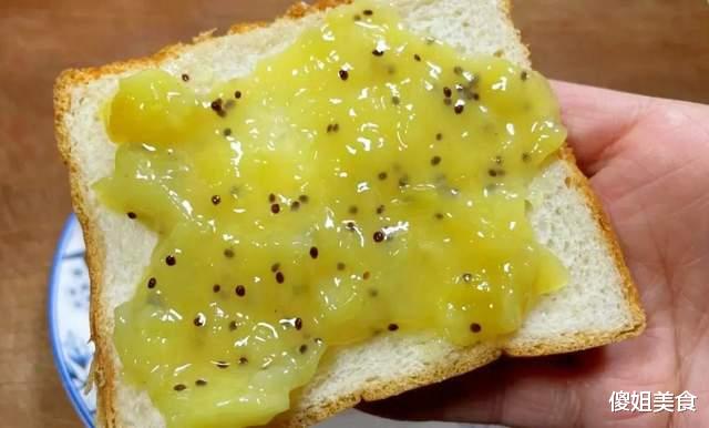 自制的猕猴桃酱,没有任何添加剂,味道纯正,酸甜适中,比超市里买的那些不知道好吃多少倍。上周末我做了几瓶,早上抹在吐司上,我家挑食的小朋友居然主动要求“再来一片”。晚上拌酸奶,又成了美味的甜品。