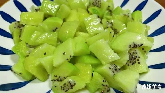 制作步骤:1、把猕猴桃洗干净,然后用小勺或者削皮刀把外皮去掉,去皮后的猕猴桃切成小块,不用太小,大概1厘米见方就行,这样做出来的酱还能吃到果肉颗粒,口感超棒。