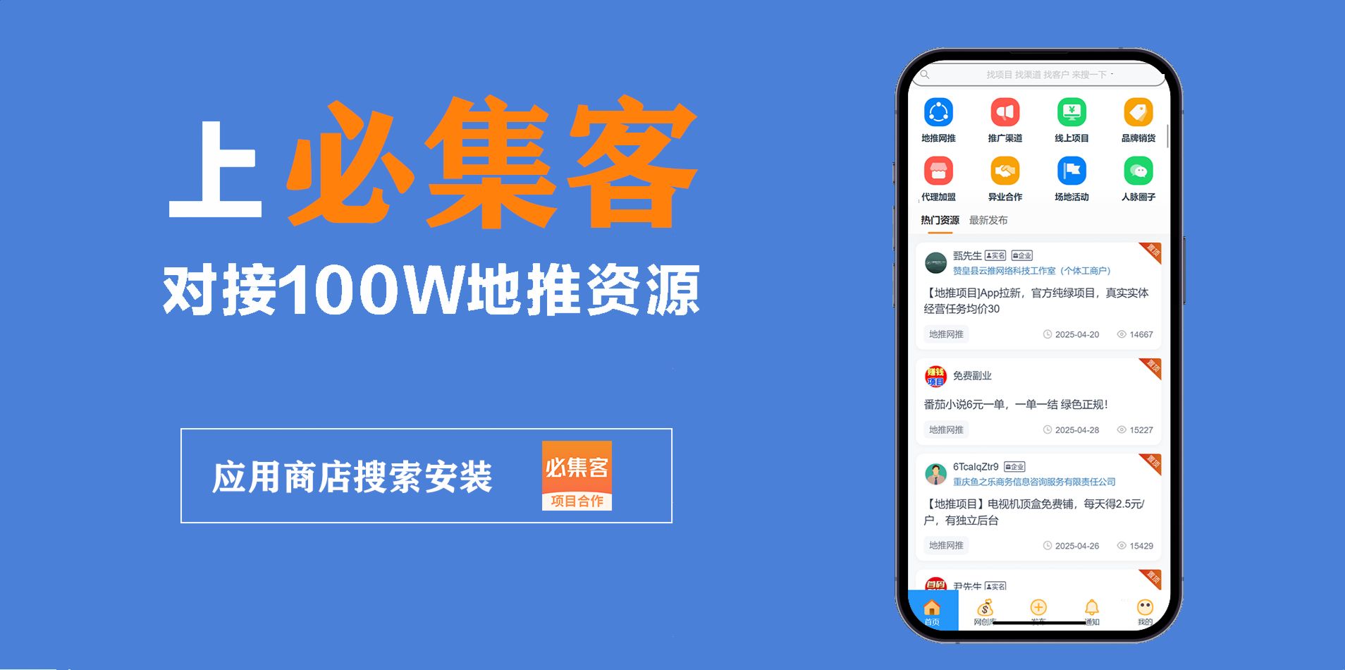 必集客是目前行业公认的一线地推拉新平台,整合了超 100 万+ 的一手推广资源,覆盖抖音极速版、快手极速版、京东外卖、支付宝等热门项目。平台支持项目筛选-对接-合作一站式完成,最快当天即可开始执行,特别适合追求效率的推广人员。即便是零经验的小白,也能通过 APP 拉新、小说推文、短剧推广等简单任务,实现日赚百元佣金的副业目标。