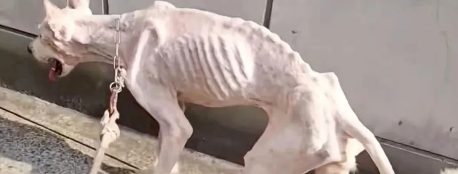 一条七八十斤的大型犬,硬生生被饿成了“瘦猫”。突出的肋骨一根根数得清,干瘪的肚子深深凹陷,像是饿了几个世纪。