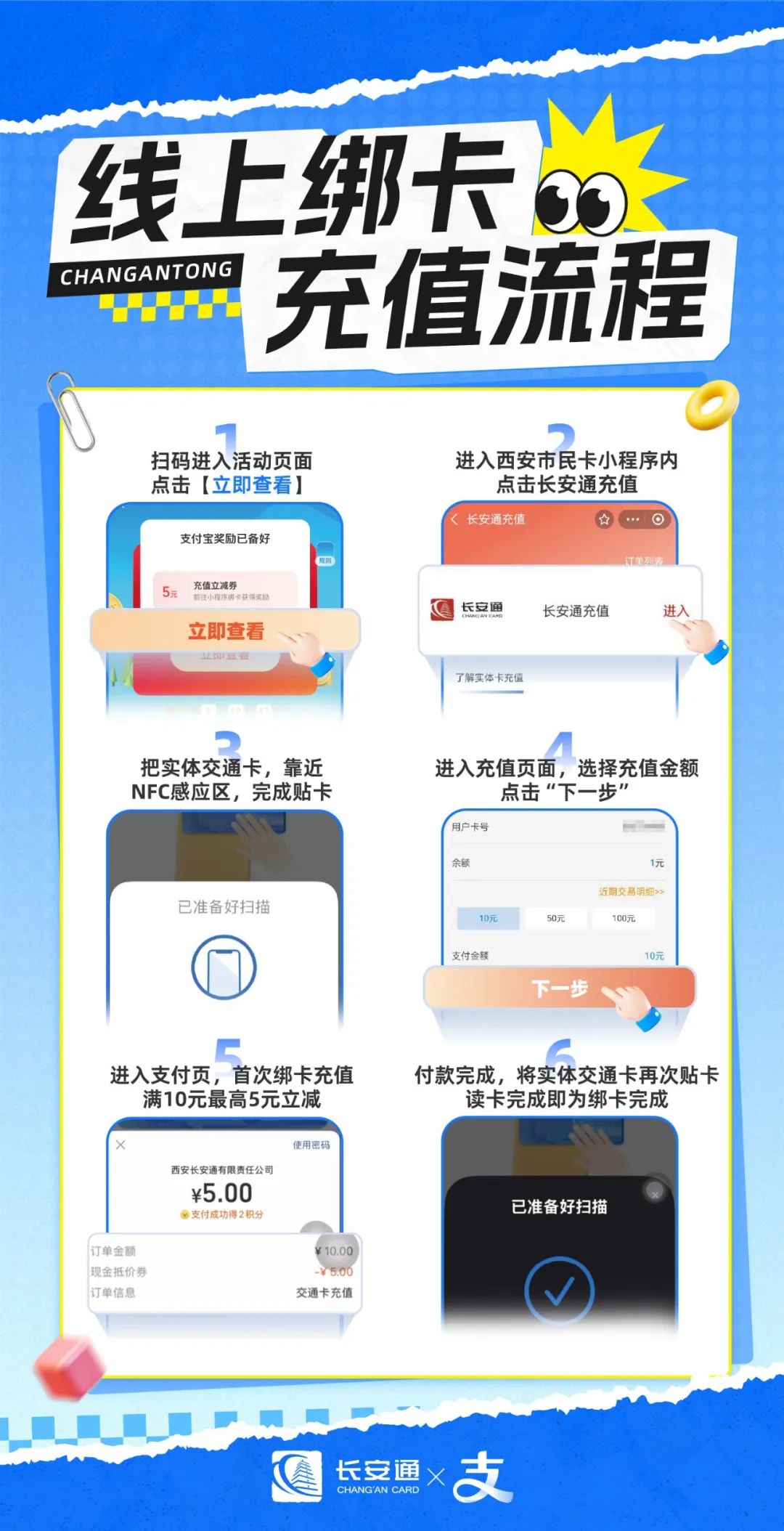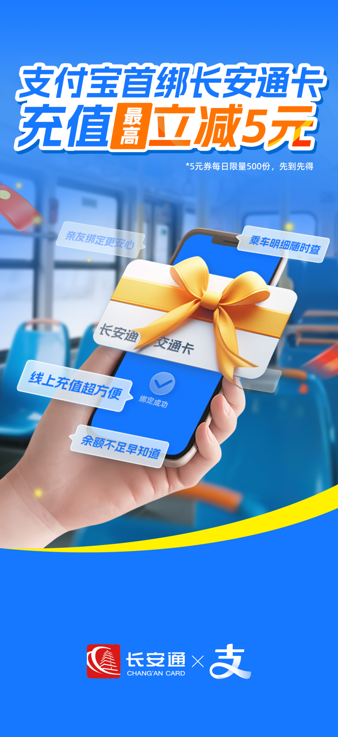 用支付宝充值交通卡,最高立减5元!