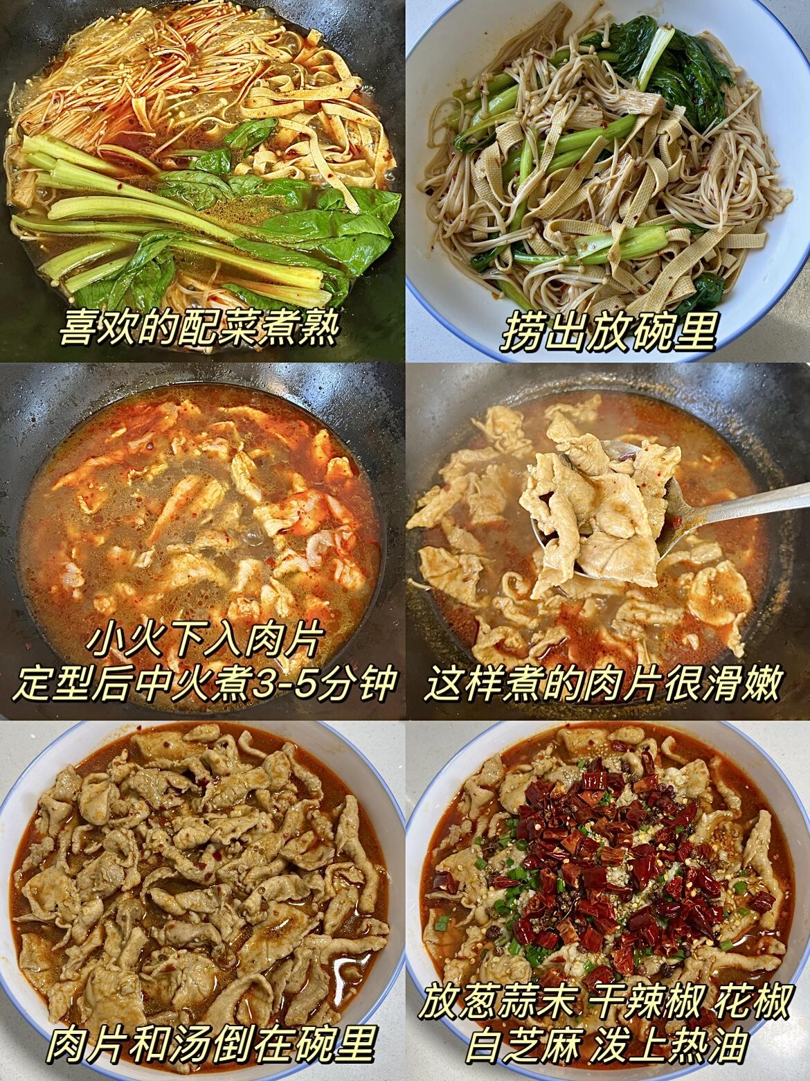 第五步,煮肉片。转小火,将腌制好的肉片一片一片放入锅中,这样能防止肉片粘连。肉片全部下锅后,先不要搅拌,等肉片定型,再转中火煮3 - 5分钟,这样煮出的肉片非常滑嫩。
