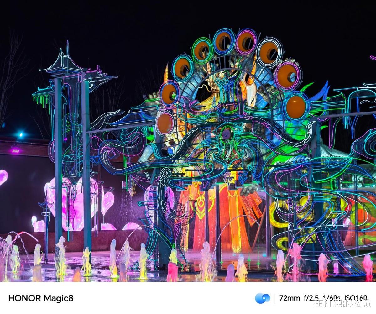 而这颗6400万像素的超夜神长焦,它提供的是在复杂光线下的一份拍摄“底气”。前几天去景区玩,到了夜晚里面灯光开启以后,Magic8的长焦镜头配合OIS防抖,在取景框里就给了我信心:画面出奇地稳定。按下快门后,灯光细节清晰,周围没有被溢光染成一团,整体画面干净、扎实。它不像有些算法会粗暴地提亮整个夜景,而是聪明地压制住了杂乱的高光,稳住了该有的细节,拍出了一种属于夜晚的、沉稳的秩序感。至于超广角,它的价值远不止于“装下更多风景”。在狭窄的室内或者面对宏伟的建筑时,它给了我一种构图上的自由。它没有为了追求视野而过分牺牲边缘的画质,拍下的照片四角依然清晰,线条横平竖直,这种广阔而规整的视野,让记录本身就充满了一种舒展的快感。