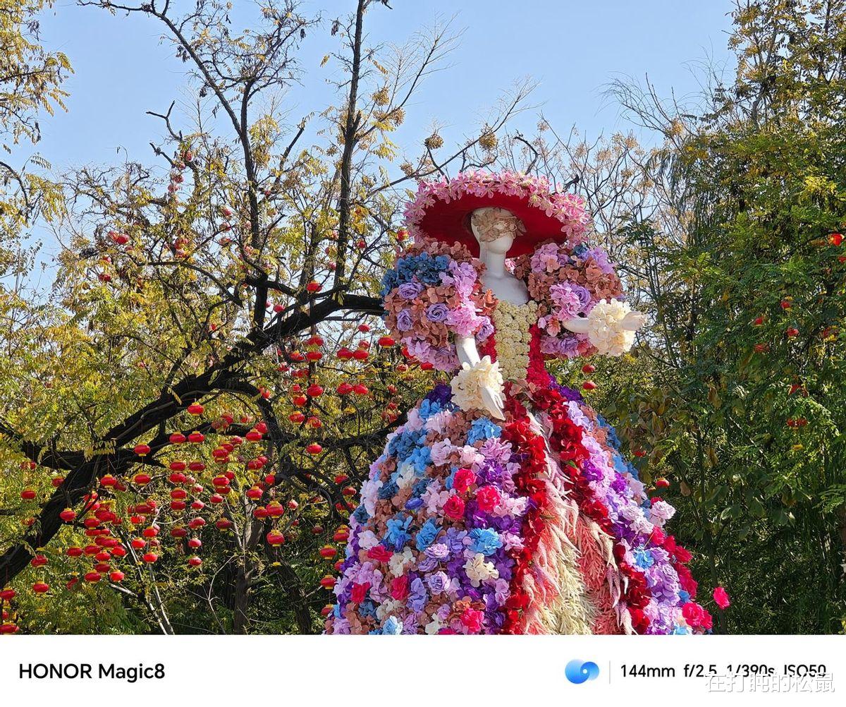 今年,影像方面被各家更为重视了。首先,在硬件方面,荣耀Magic8配备了三颗高性能摄像头:5000万像素主摄(f/1.9光圈,支持OIS光学防抖)、6400万像素超夜神长焦(f/2.5光圈,支持OIS光学防抖)以及5000万像素超广角镜头(f/2.0光圈)。主摄在日常拍摄中表现出色,细节清晰,色彩还原自然,尤其在光线充足的环境下,能够呈现出非常细腻的画面效果这枚5000万像素的主摄,成了我最近记录生活最顺手也最信赖的工具。我特别喜欢它在晴天下的表现。拍一盆菊花,画面扎实又干净。色彩也很对我的胃口,不会刻意浓艳到失真,而是还原出那种明亮通透的自然感,拍出来的天空蓝和食物原本的色泽,看着就很舒服真实。