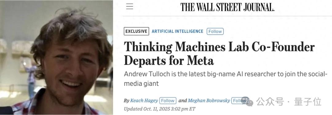 参考链接:[1]https://www.wsj.com/tech/ai/thinking-machines-lab-co-founder-departs-for-meta-442d7461[2]https://www.wsj.com/tech/ai/meta-zuckerberg-ai-recruiting-fail-e6107555[3]https://x.com/MeghanBobrowsky/status/1977078882819006630
