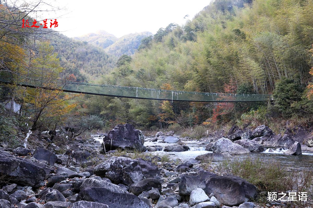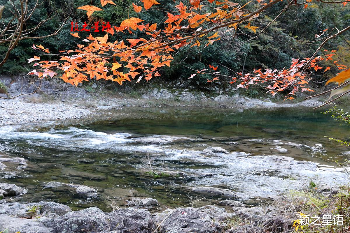 深坑溪流过麻朱潭,与清水溪两水相汇,水量增加,亦称梅坑溪,卵石河坝宽阔,红叶点缀,更加养眼,崇山峻岭之间,秘境风光,惹人留念。