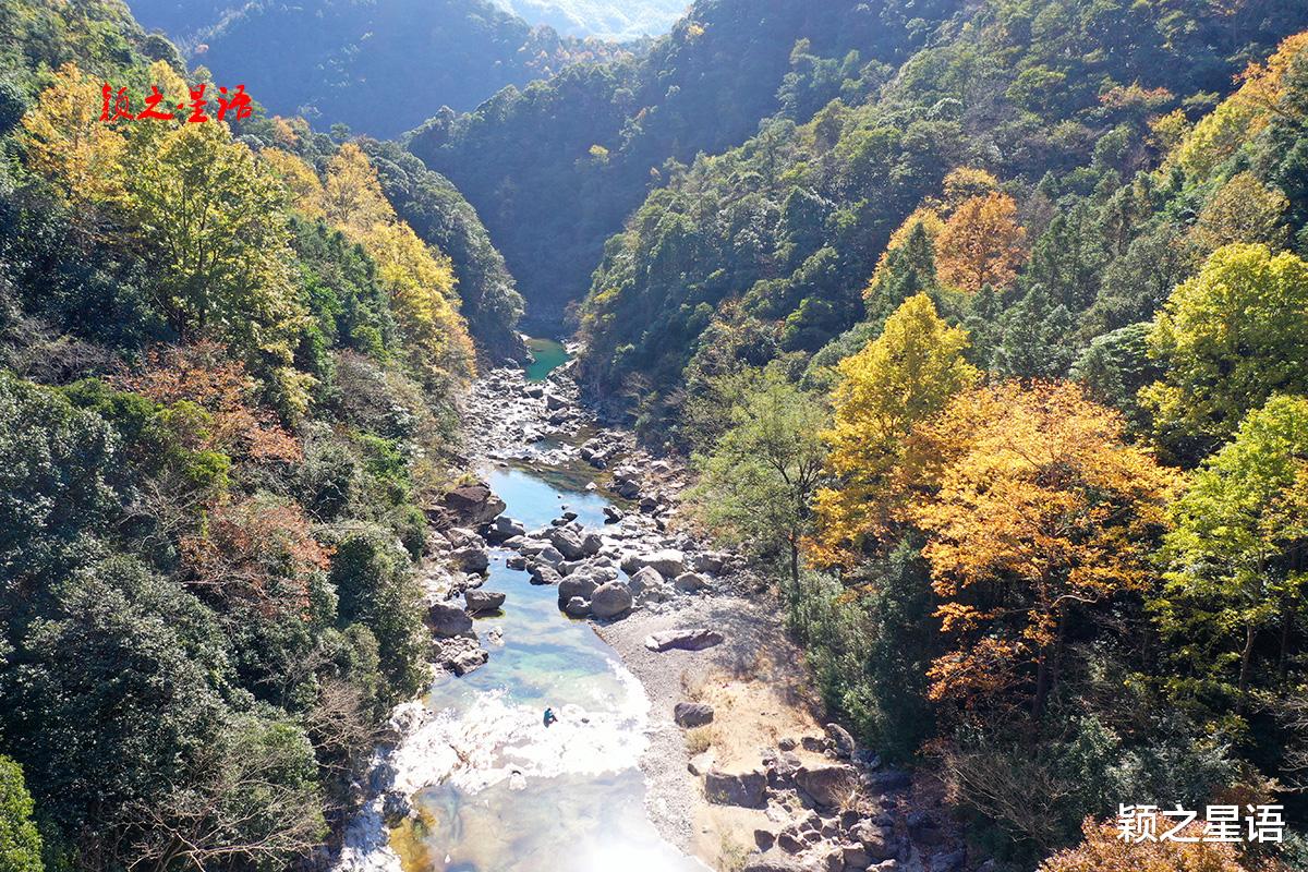 浙江省宁波市宁海县和台州市天台县的交界地带,清水溪峡谷,是两市的分界线,山重水复,路远地偏,人迹罕至,秋日层林尽染,可以独享美景与清静。