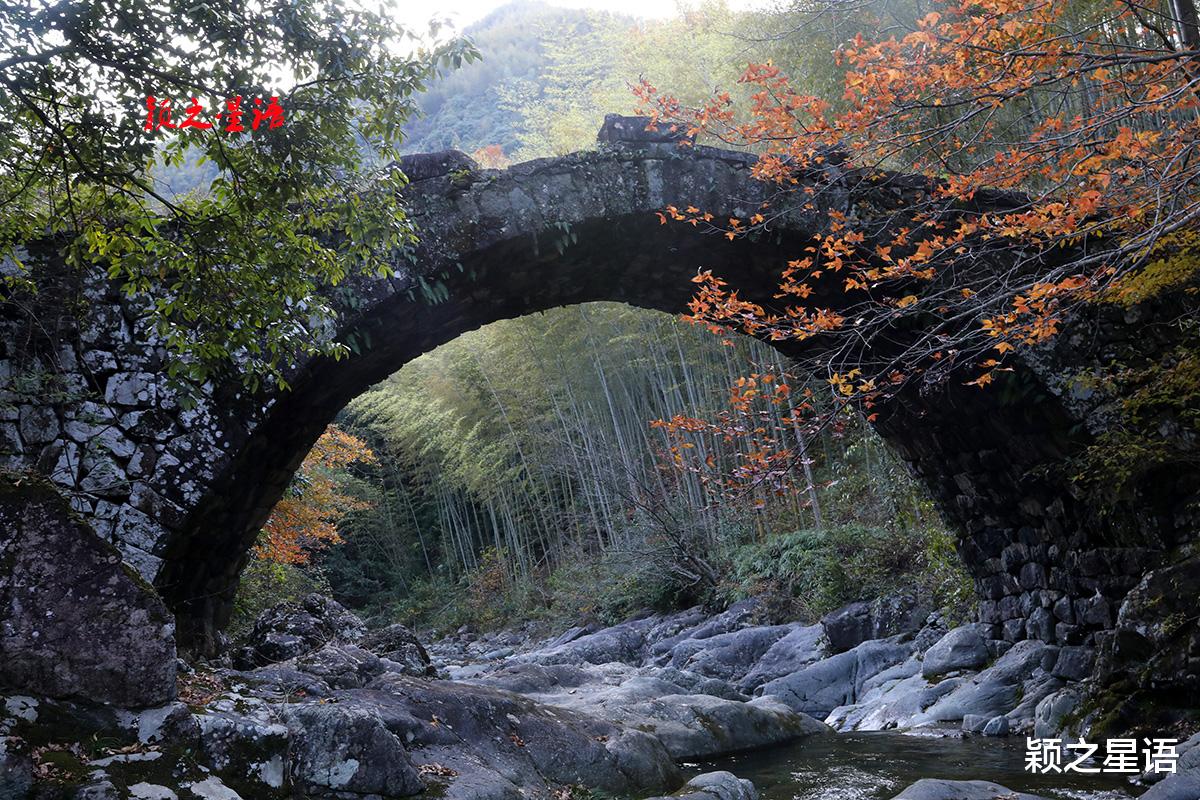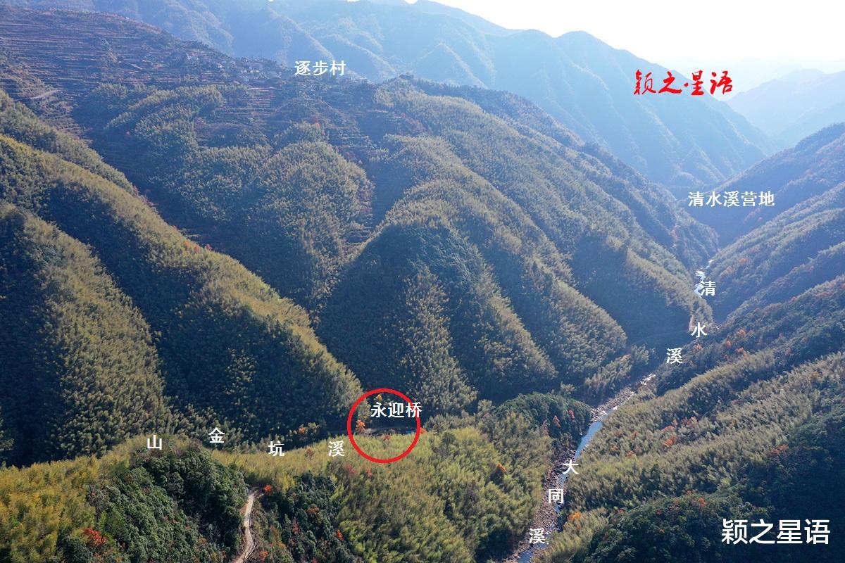 永迎桥,横跨清水溪上游的山金坑溪上,是宁波市和台州市的界桥,也是宁台古道的必经之地,桥上有国务院2009年所立的界碑,一桥跨两市。