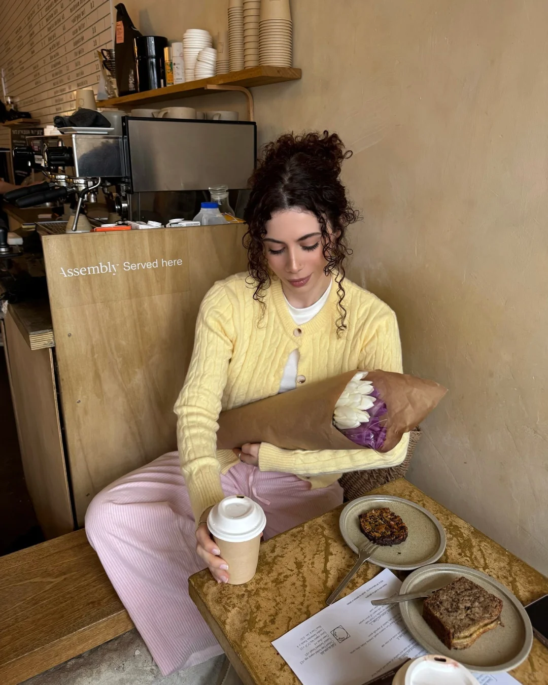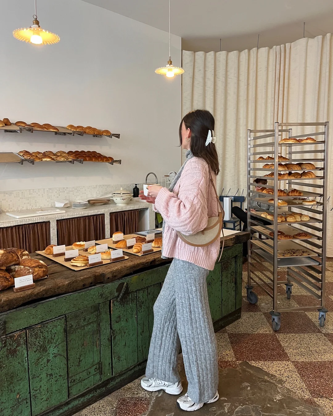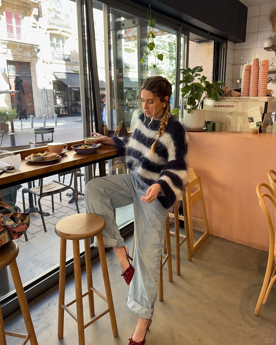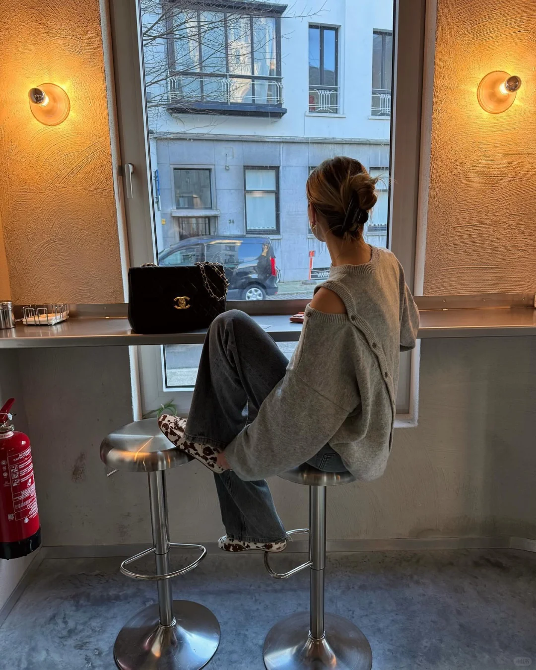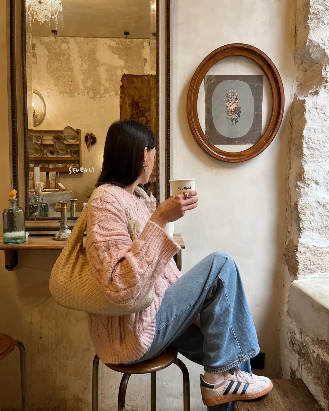 浅咖色毛衣自带温润的复古滤镜,