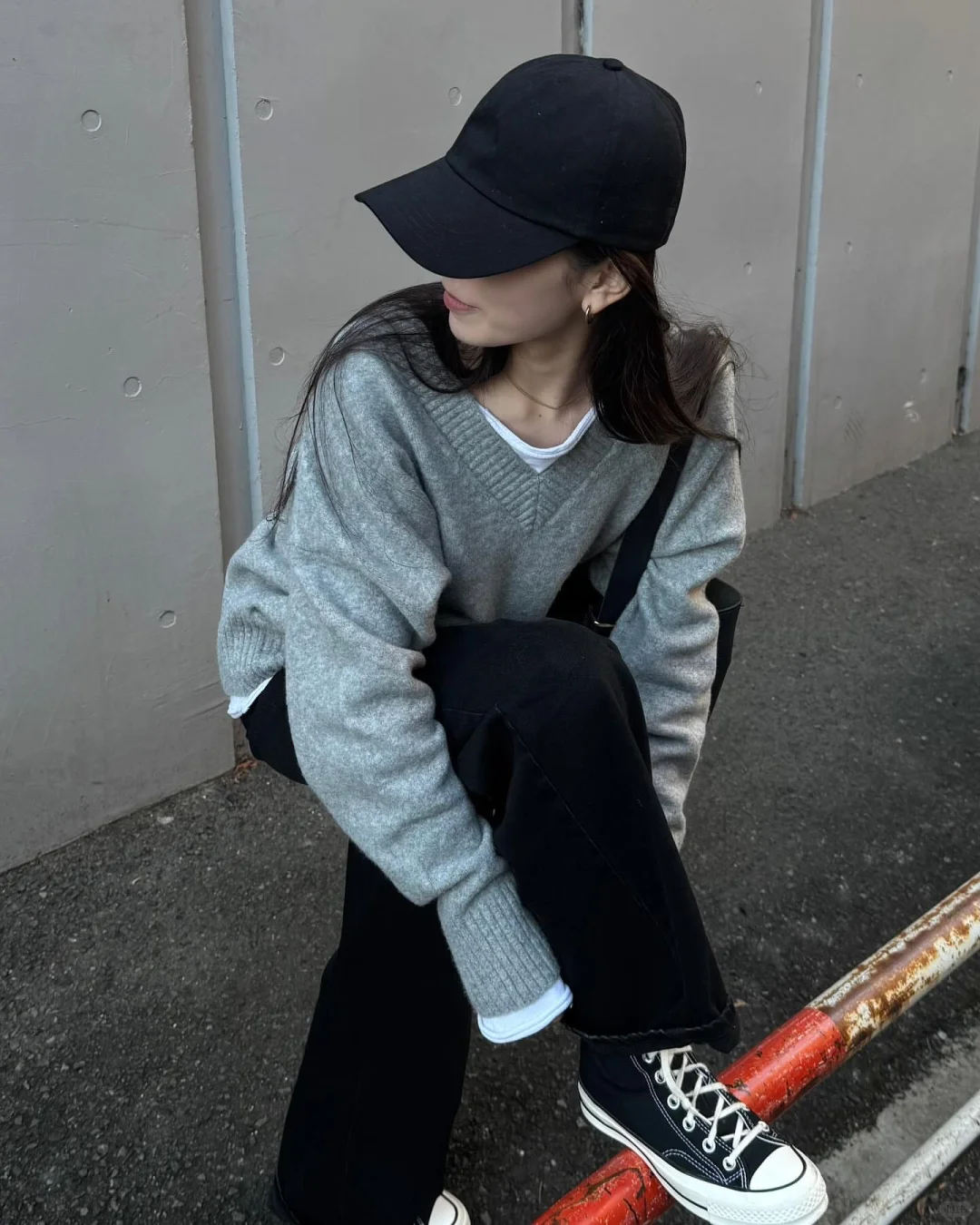 也可以选择宽松的灰色针织开衫,
