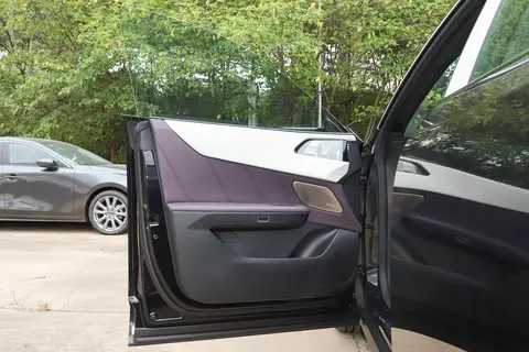 进入车内,悬浮环抱式座舱,具有包裹感;莫兰迪色系的UI界面、钛色金属织物装饰,整体很简洁又高级。搭载4nm芯片与AI大模型,芯片算力达主流SA8155芯片的1.6倍,运算速度快,响应精准。语音交互系统支持豆包和讯飞星火双AI大模型,覆盖超过1700项功能,语音指令响应时间仅39ms,复杂对话准确率提升55%,AI助手能精准响应指令,多屏联动功能可实现导航、娱乐等信息切换,用起来便捷高效。26.45英寸5K一体屏显示清晰立体,可选装的100英寸裸眼3D HUD通过眼球随动科技实现导航与道路虚实融合,驻车时可化身3D影院,配合23扬声器杜比全景声系统,7.1.4的音响布局,1280W的功放,使出行的路上轻松愉快。还采用了双层隔音玻璃、50多处吸隔声材料等措施,静谧性不错。