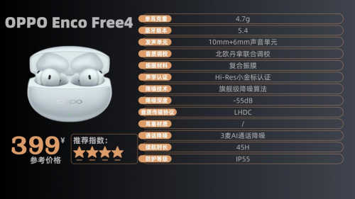 音质上,它搭载 11mm+6mm 同轴双单元,频响覆盖 15-40KHz,搭配定制双 DAC,还支持 LHDC5.0 和 Hi-Res 认证,声音细节清晰、高低音表现均衡,但复杂音乐中乐器分离度一般。降噪深度达 55dB,对人声频段优化到位,日常降噪效果好,可极嘈杂环境下效果会打折。