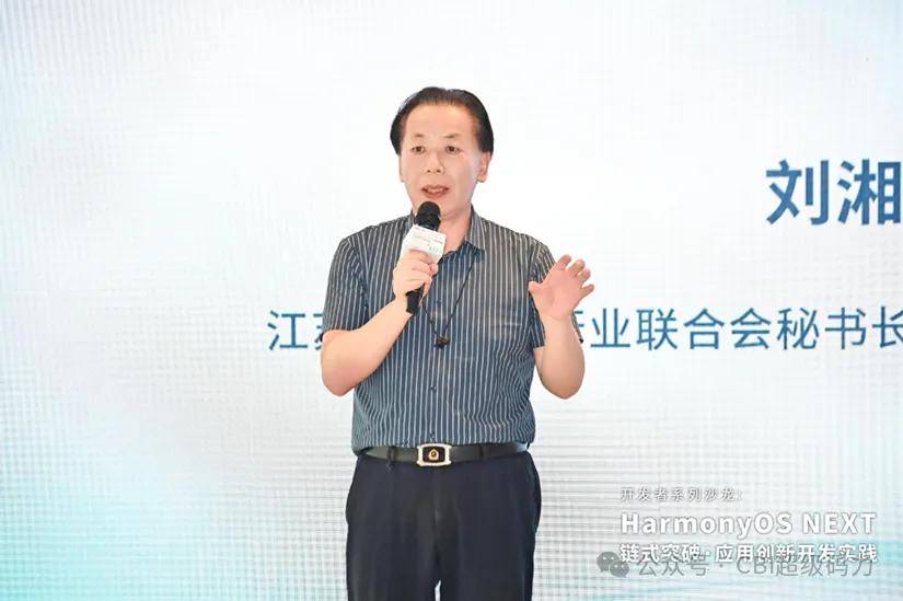 江苏省互联网行业联合会秘书长、江苏省互联网协会副会长刘湘生出席活动并致辞。他指出,鸿蒙系统的诞生标志着中国在操作系统领域实现关键突破,为构建自主可控的技术底座奠定坚实基础,同时也为软件从业者开辟了全新的发展赛道。他特别强调,江苏坐拥多所知名高校,具备高素质软件开发人才集聚优势,开发者应深度挖掘鸿蒙系统作为智能终端操作系统在智能化场景中的技术潜力,打造更多标杆性智能产品,推动江苏软件产业创新升级,助力鸿蒙生态繁荣发展。