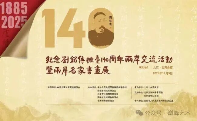 2025年12月9日,由中华全国台湾同胞联谊会指导,中华全国台湾同胞联谊会联络部、安徽省刘铭传研究会、中国闽台缘博物馆等机构主办,北京五洲和平书画院等单位支持的“纪念刘铭传抚台140周年两岸交流活动暨两岸名家书画展”在此隆重开幕。百余幅来自海峡两岸书画名家的精品汇于一堂,笔墨为魂,丹青作骨,共同追思一位跨越海峡的历史巨人——刘铭传,彰显两岸血脉的源远流长。