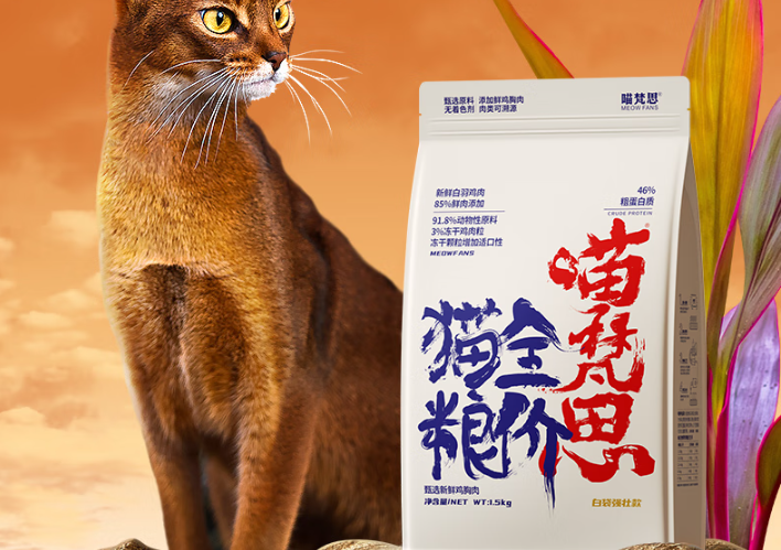 喵梵思在原料透明度上花了心思,核心原料不仅标了种类部位,肉源还提供了第三方溯源信息。配料里同时出现了鲜肉和鸡肉粉,说明配方在成本和品质之间做了平衡。喵梵思猫粮怎么样?配料表里甘薯粉、马铃薯粉、木薯粉。蛋白质≥42%,脂肪≥18%。品牌主要在线上销售,定位是提供实惠选择,生产方是山东海创工贸。