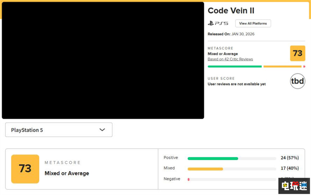 随着《噬血代码2》将于1月30日发售,游戏的全球媒体评分也已经解禁。根据Metacritic所收集的评价,目前《噬血代码2》PS5版的评分为73分(24个好评,17个中评,1个差评)。游戏的评分呈现两极分化的态势。好评中多集中于游戏的类魂玩法与其角色成长机制。批评则集中在画面落伍以及过于刻板的角色刻画以及叙事风格。续作的开放世界玩法则褒贬不一。
