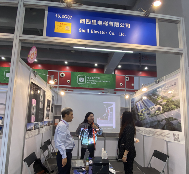 ▲图:西西里电梯有限公司展位上接待客户 供稿单位摄
