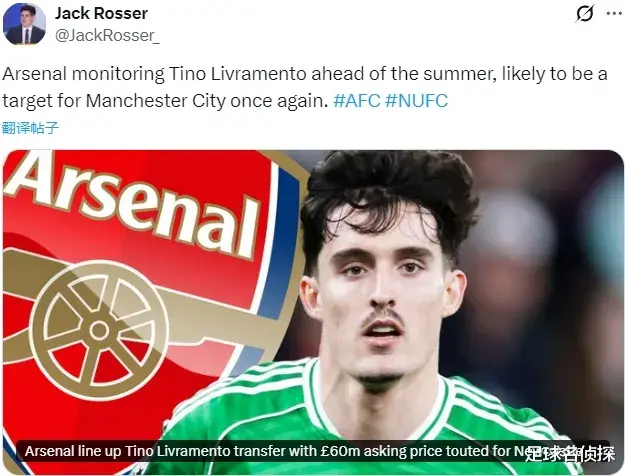 太阳报记者JR消息,阿森纳正密切关注利夫拉门托。