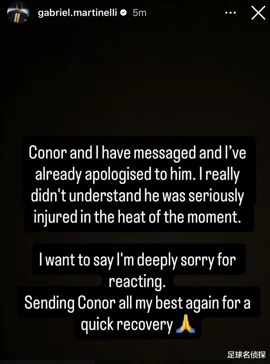 马丁内利赛后在IG上向布拉德利表达了歉意。