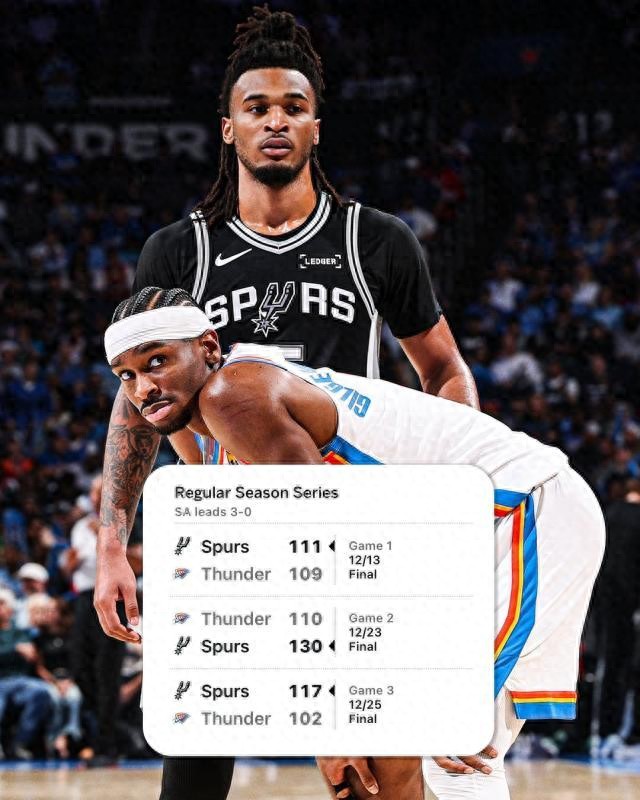 北京时间12月26日,马刺客场117比102大胜雷霆,本赛季连续第三次击败卫冕冠军,而且这3场比赛就发生在过去13天内,过去两战马刺更是连胜雷霆!如果将两队的交锋放在一轮系列赛里,雷霆已经0比3落后,而我们都知道,NBA季后赛历史上从未有球队能完成0比3落后的大逆转。