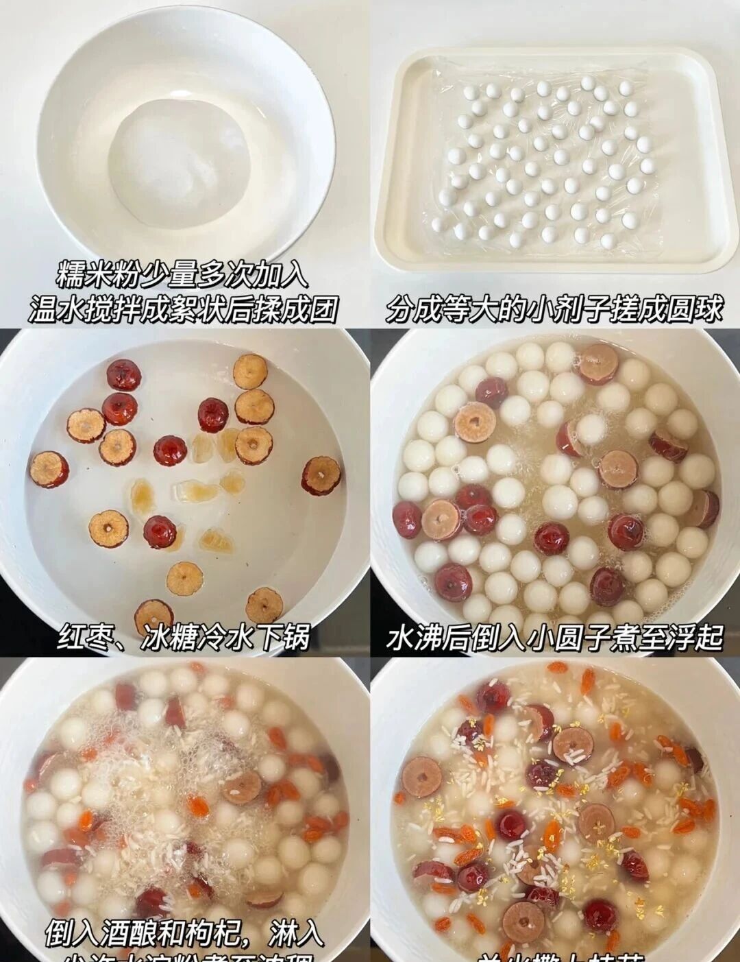 糯米粉、酒酿、干桂花、红枣、枸杞、冰糖、水淀粉