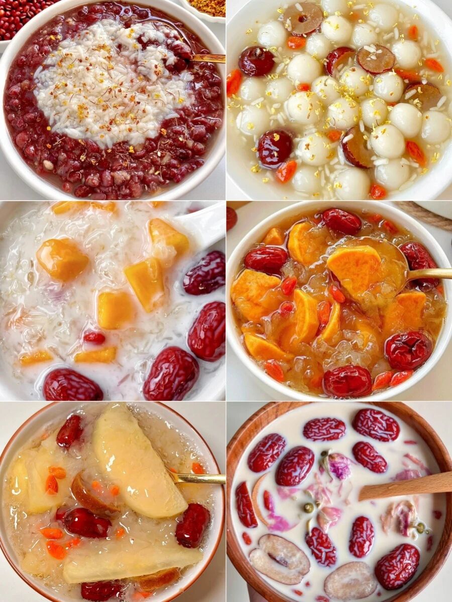 银耳、红枣、山楂干、苹果、枸杞、冰糖
