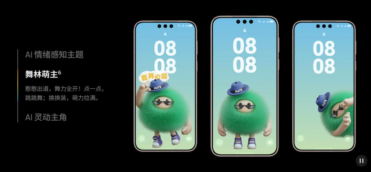 结束了走亲访友的一天,睡前躺床上刷手机,锁屏上的毛绒3D形象“憨憨”会随你吹气飘走,轻点还能招手互动,通过满满的情绪价值给你“回血”。值得一提的是,如果你和家人朋友都用华为手机,两台设备碰一碰还能分享“憨憨”主题,将快乐传递出去。