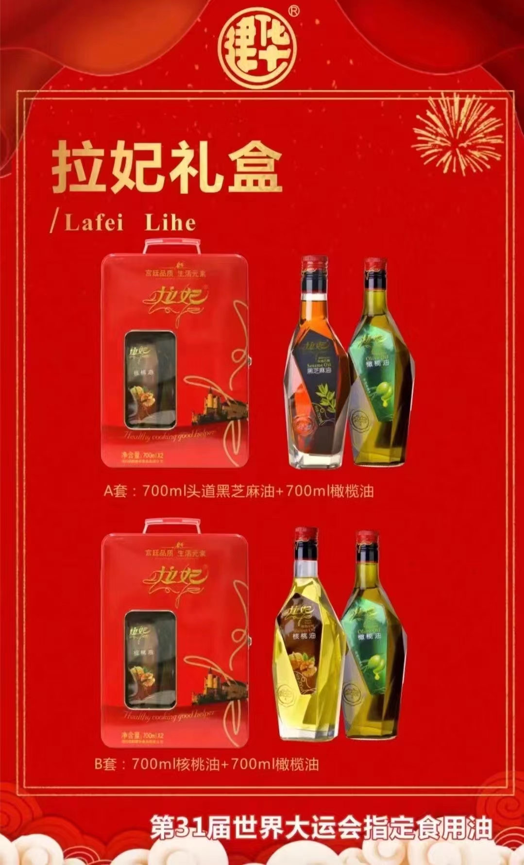 建华拉妃礼盒,简约大气,以头道芝麻油与橄榄油的纯正风味,彰显高贵品质,是送老师的不二选择。