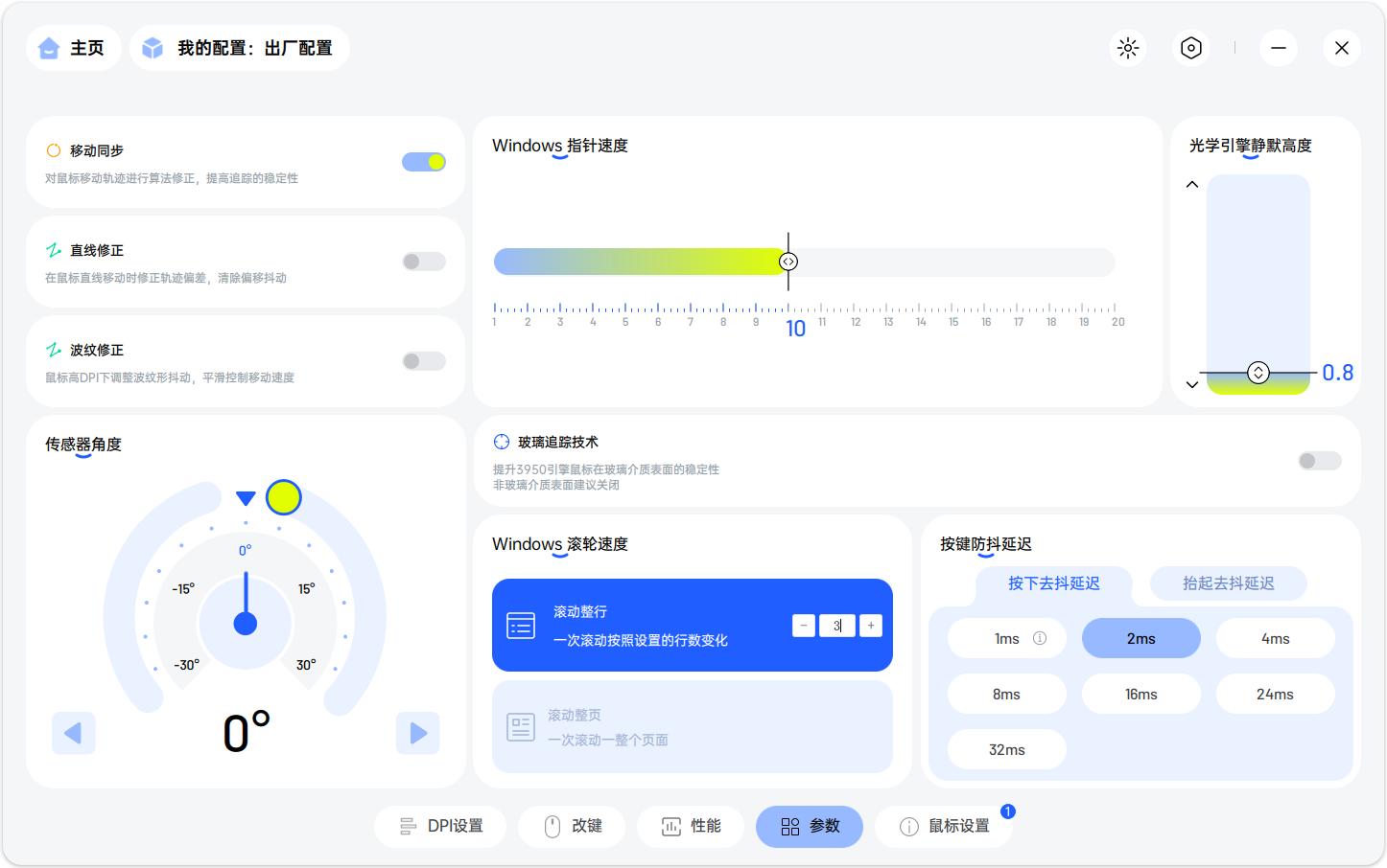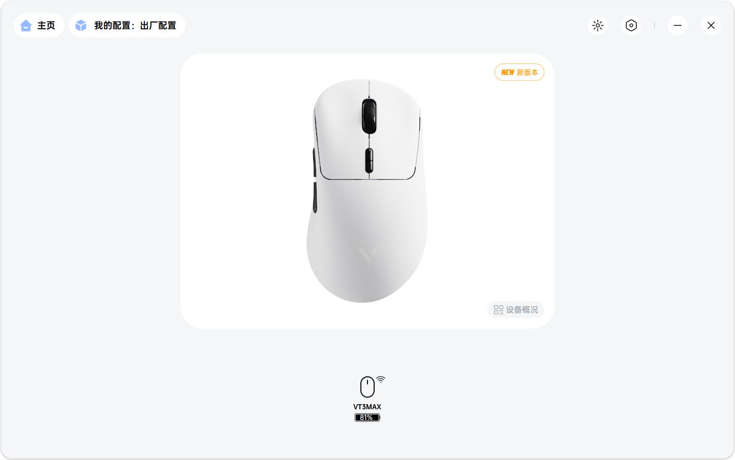 一键识别:自动检测鼠标,主界面显示电量/DPI/回报率等核心参数。