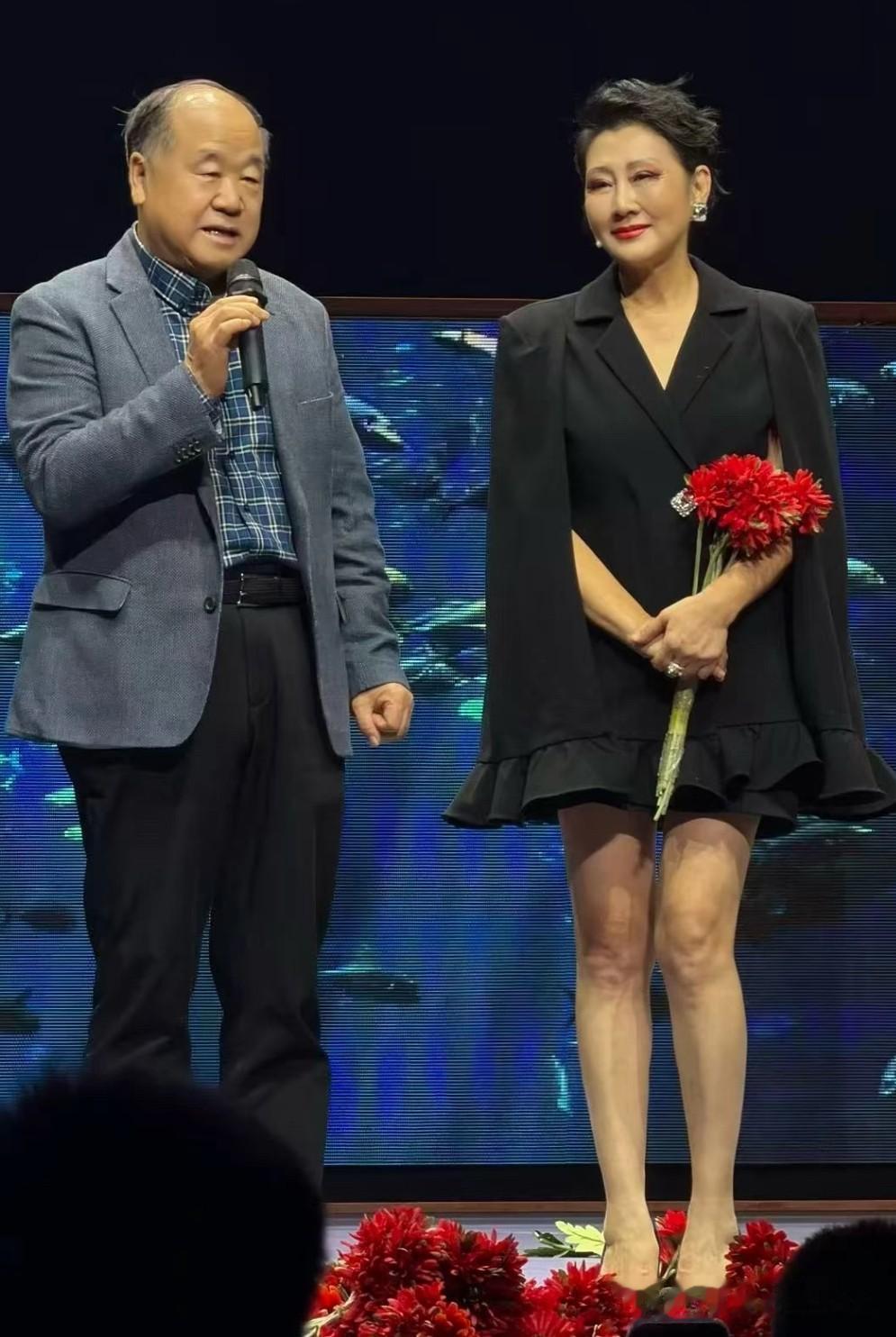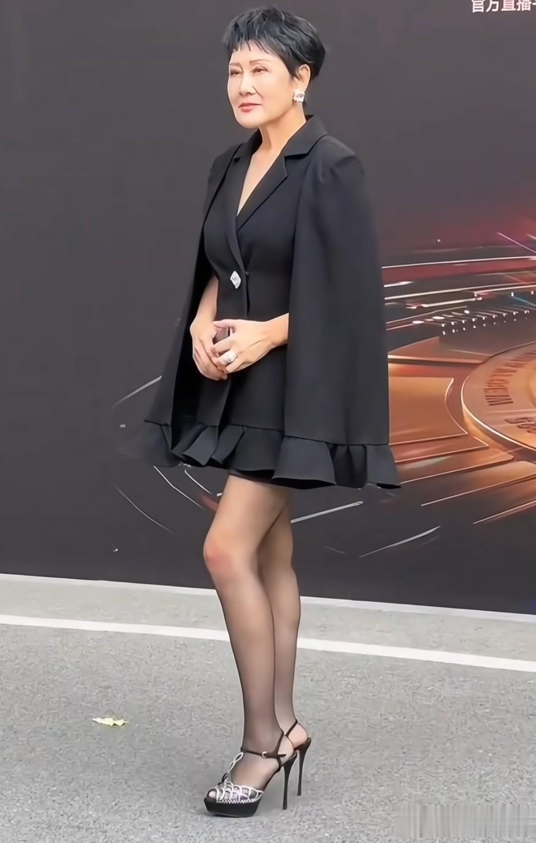 她在话剧《鳄鱼》里穿着同一套衣服,63岁的人她状态还是非常好,气质很干练,身材也保养的很好,惹得台下一片欢呼。