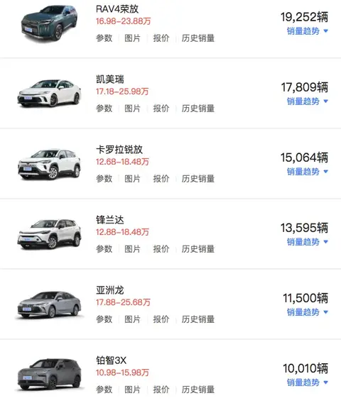 与之形成鲜明对比的是中国市场的疲软表现。11月丰田在华销量15.46万辆,同比下滑12%,产量更是同比大跌14%,成为拖累全球销量的主要因素。丰田官方对此解释,这一情况主要受国内补贴政策缩减、消费者持币等待新政策落地,以及RAV4荣放等主力车型处于换代周期的多重影响。从具体车型销量来看,11月仅有RAV4荣放、凯美瑞等6款车型销量破万,曾经的“国民家轿”卡罗拉月销仅9290辆,较巅峰时期的月销2万辆以上大幅下滑。不过值得注意的是,广汽丰田铂智3X作为纯电车型代表,连续两个月销量破万,成为合资品牌新能源市场中的一抹亮色。