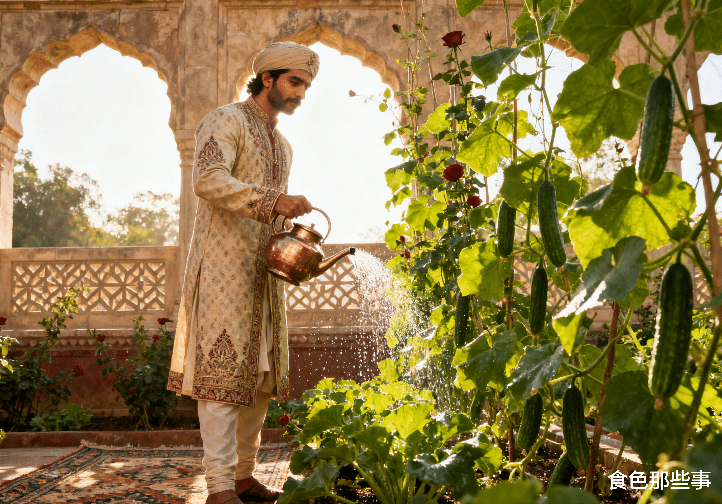 有趣的是,阿克巴每周有三天吃素,蔬菜都来自他的菜园,据称还都是用玫瑰水精心滋养的……