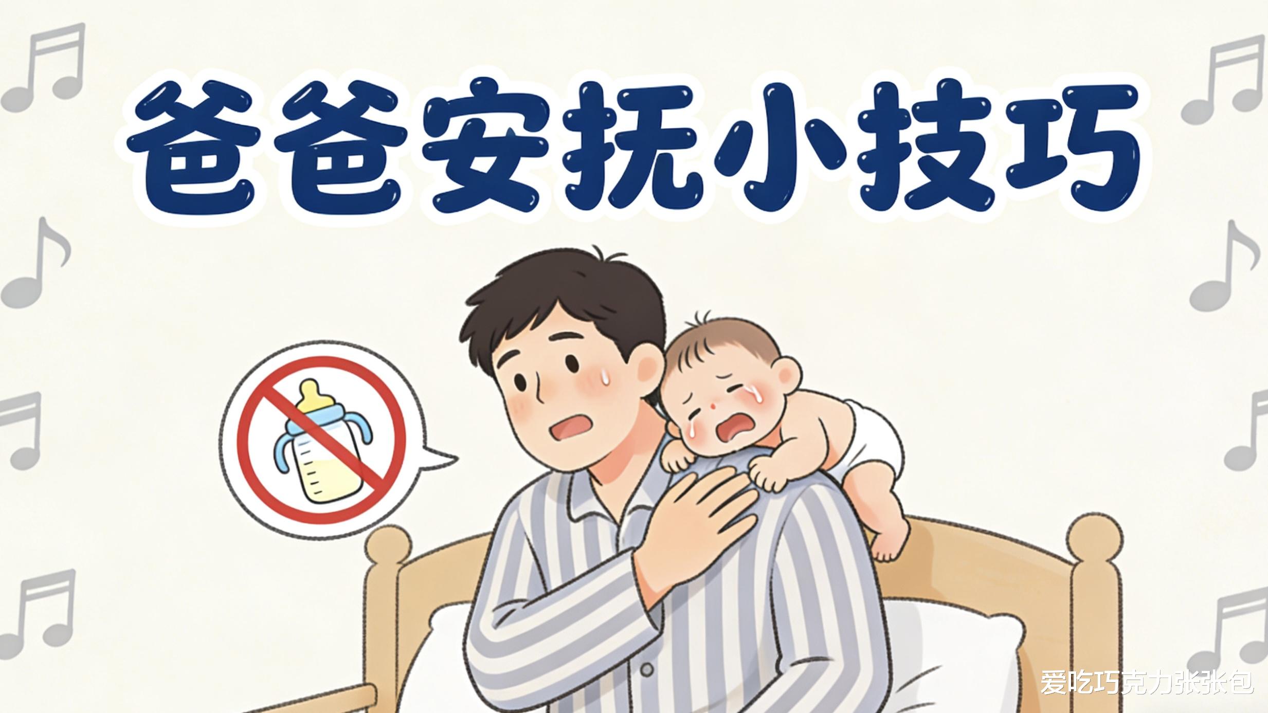 第三个妙招:爸爸上阵“救场”,打破“奶睡”条件反射。很多宝宝夜醒后,只要妈妈一抱、一喂奶就安静,这其实是形成了“妈妈=喝奶”的条件反射。这时不妨让爸爸来接手安抚工作,宝宝哭闹时,爸爸用熟悉的摇篮曲、轻柔的拍背动作哄睡,慢慢让宝宝明白“夜里醒来不一定有奶喝”。这个方法不仅能帮妈妈减负,还能增进亲子感情,一举两得。