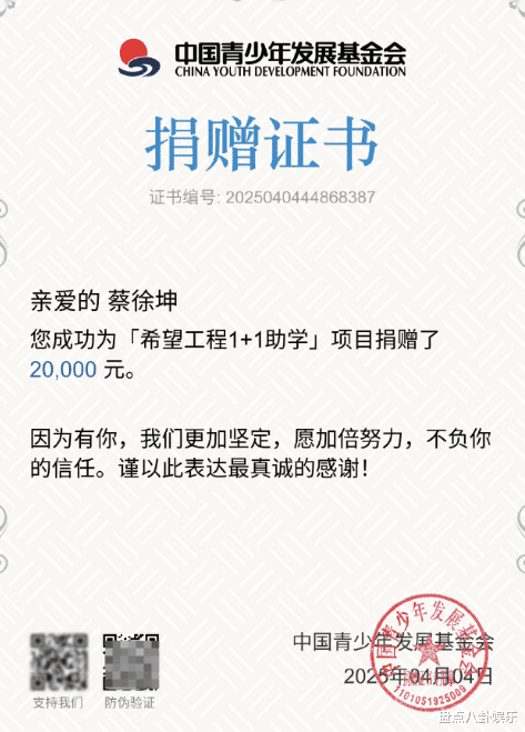 更令人赞赏的是,蔡徐坤工作室决定将本次胜诉相关赔偿款通过公益项目捐出。这一举动,不仅展现了蔡徐坤先生及其团队的社会责任感,也向社会传递了正能量。在追求个人权益的同时,不忘回馈社会,用实际行动践行公益精神,这样的行为无疑值得称赞与学习。
