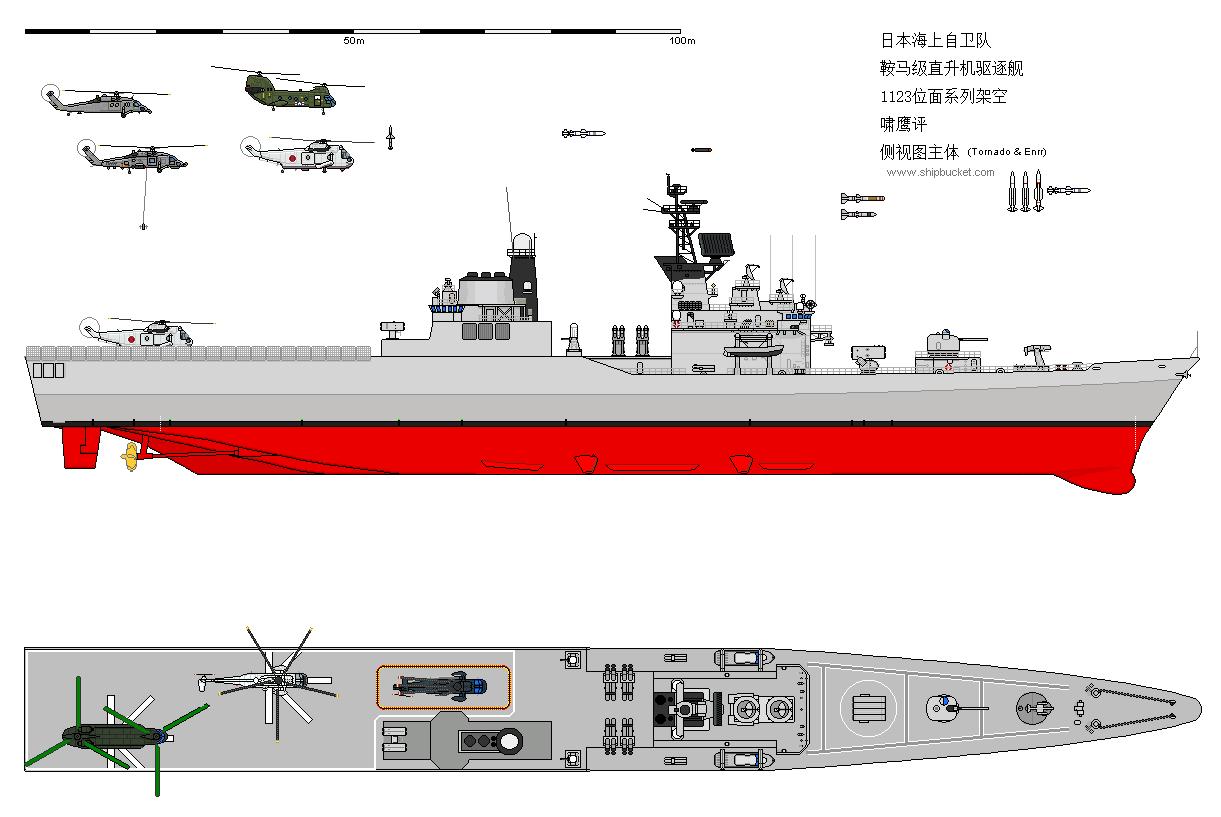 为了分散美国的防空压力,更好的对付苏联那群粗又长,美国在20世纪80年代末,同意向日本出售全球最先进的宙斯盾雷达系统,1988年日本开始研发搭载宙斯盾系统的金刚级宙斯盾舰。与此同时日本也开始着手在鞍马级直升机驱逐舰的基础上,略微放大,计划研发一款类似于意大利加里波第级轻型航母的全通甲板直升机驱逐舰。