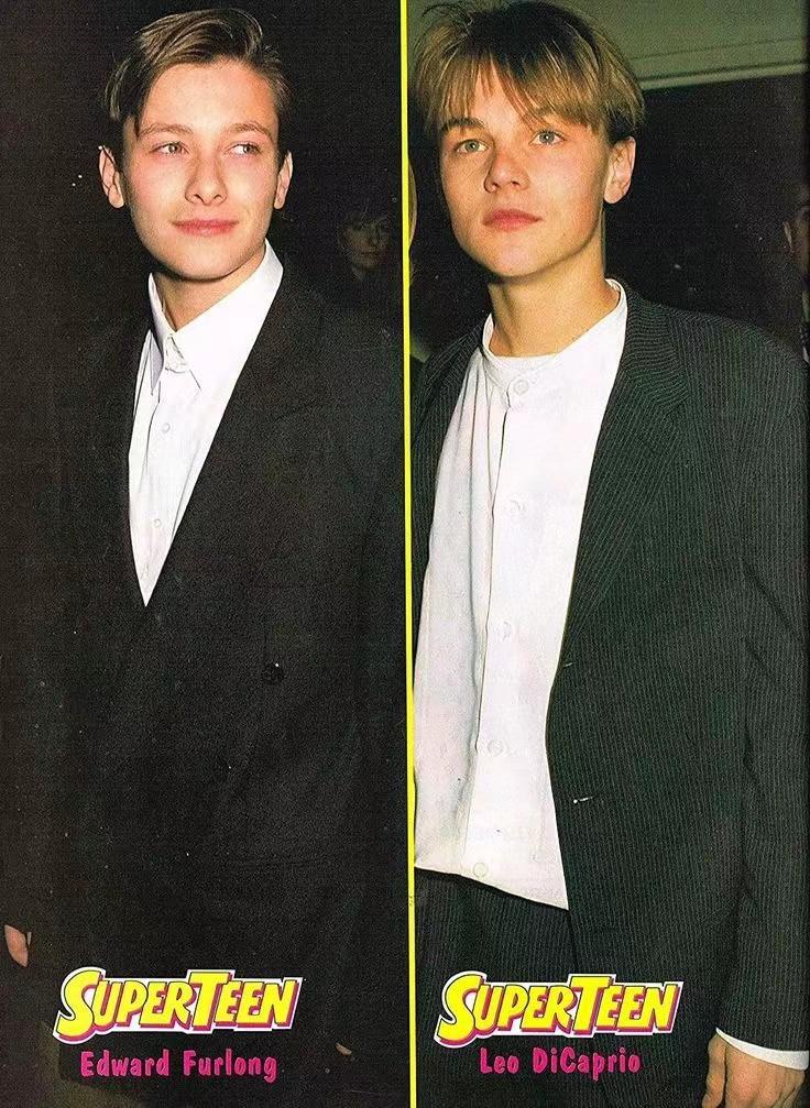 13那年,爱德华的颜值已经远超同年龄的普通人,棱角分明的脸庞搭配忧郁的眼神,爱德华丢在人堆里也是帅气到扎眼,俗称“瞎眼可见的美貌”。就算是跟小李子站在一起也毫不逊色。