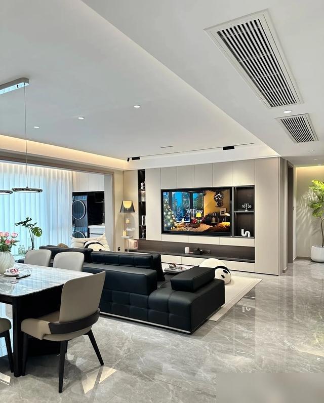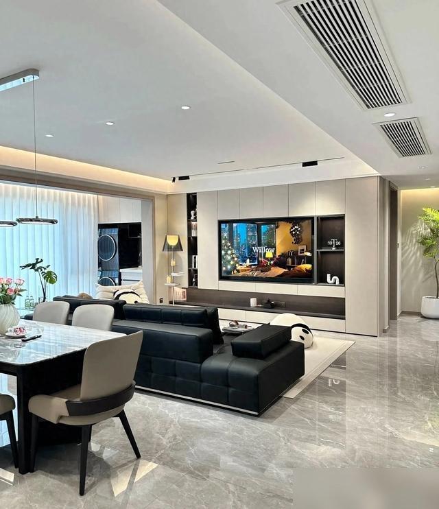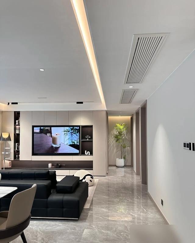 先说那堵电视墙别小看它一整排隐形收纳把熊孩子玩具猫主子抓板全吞进去关上门世界瞬间静音85寸大黑屏往中间一嵌跟电影院差不了多少周末窝沙发刷剧连可乐都省得买爆米花。