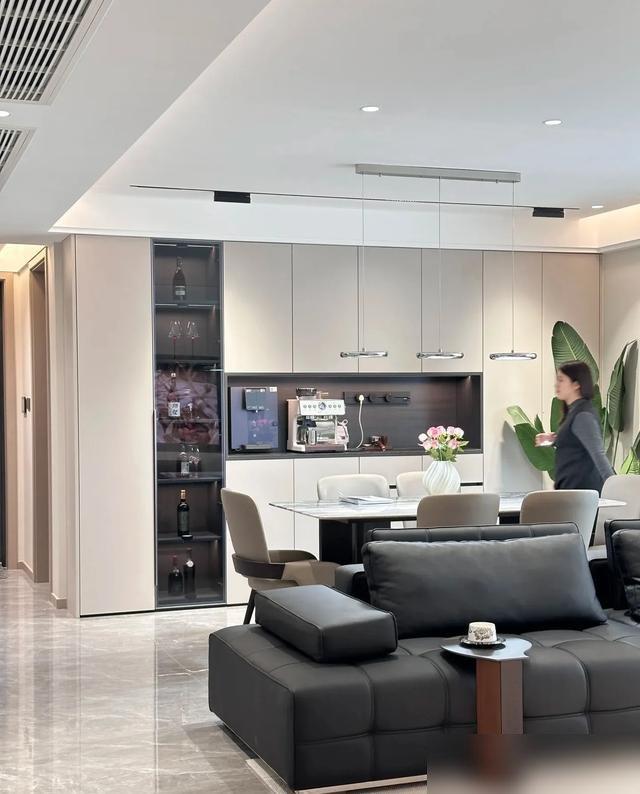 餐边柜玻璃门+平板门混搭藏八露二手办红酒都能摆中间留操作台咖啡机吐着香气面包机叮一声早餐三分钟搞定上班族狂喜。