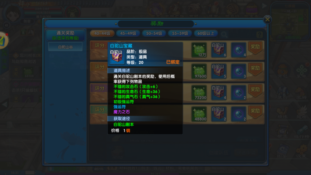 S级:白驼山宝藏*4,宠物升级丹(中)*2。