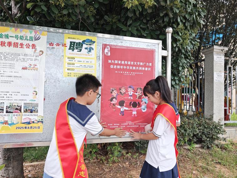 活动前,志愿者们提前学习推普知识,准备宣传海报与宣传单页。到达小区后,大家分工协作,一部分志愿者在小区公告栏、单元门口张贴推普海报,向过往居民讲解海报内容;另一部分志愿者手持宣传单页,向小区居民、商铺店主普及普通话的重要性,重点向老年人、外来务工人员介绍“日常交流常用普通话表达”“规范用字对生活的帮助”等实用内容。面对居民提出的“如何纠正孩子发音”“哪里能学习规范用字”等问题,小小志愿者们都耐心解答。